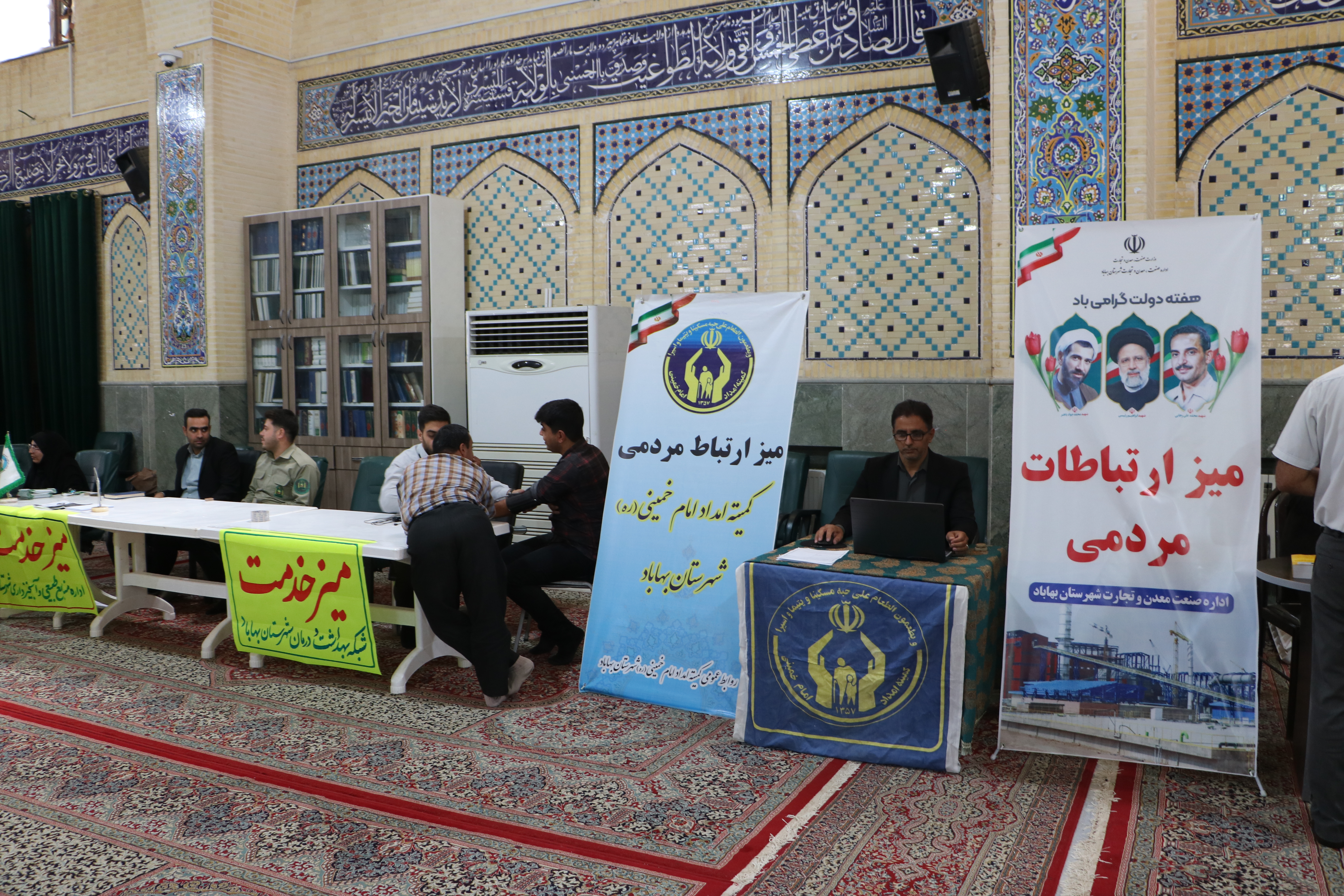 به مناسبت هفته دولت میز خدمت توسط ادارات وارگانهای دولتی بهاباد درنمازجمعه برپاشد.