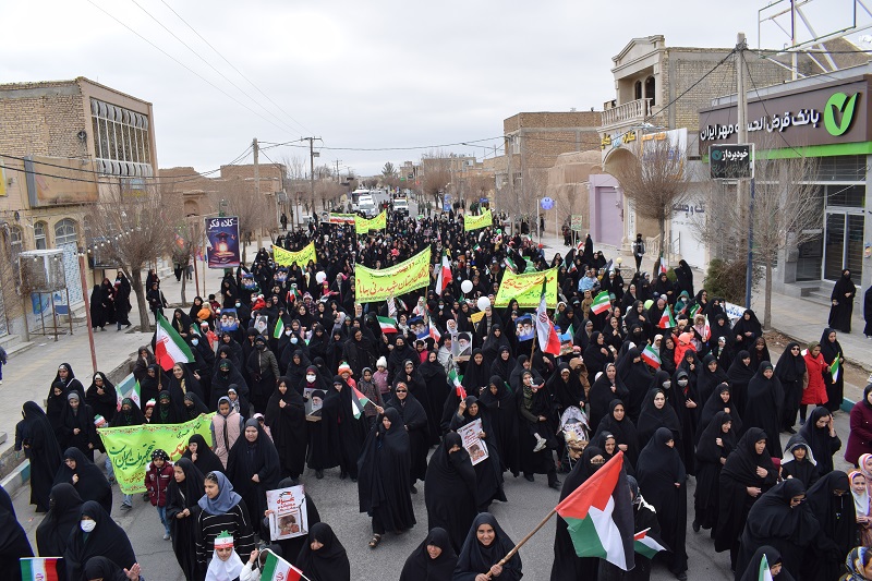 تجدید بیعت مردم شهرستان بهاباد با امام و انقلاب در راهپیمایی 22 بهمن